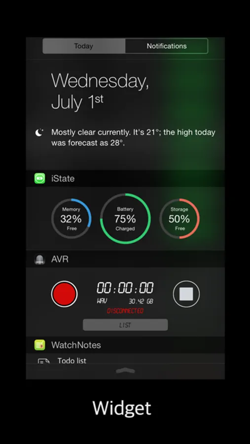 Besides, it is also possible to check battery/memory/storage space information in real time, not only on Apple Watch, but also on Today Widget.