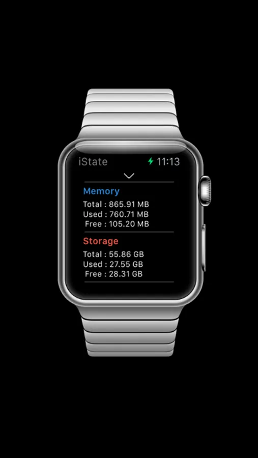 iState enables an easy and quick check of battery, memory, and storage capacity information on Apple Watch.