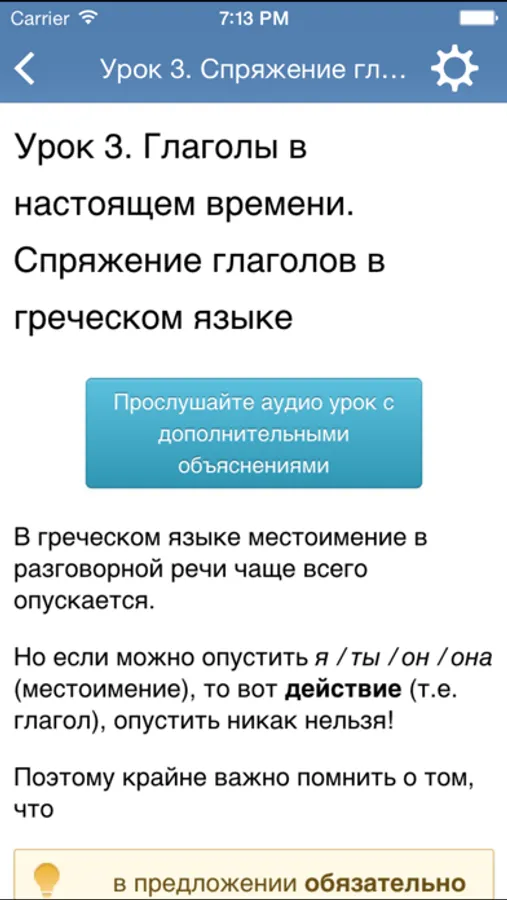 В курс вошла только базовая грамматика греческого языка, которая чаще всего используются.
