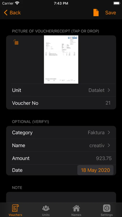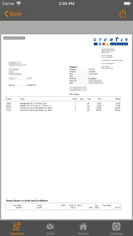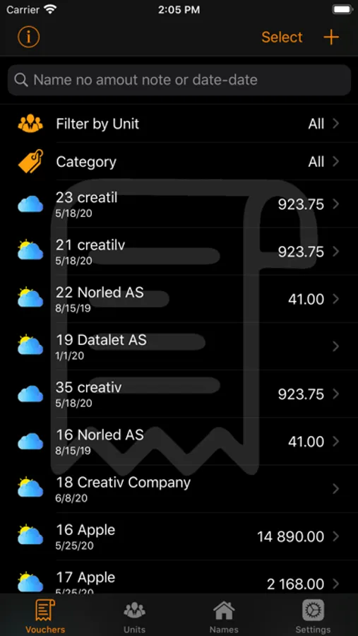 Bilag Cloud stores your vouchers/receipts in the iCloud.