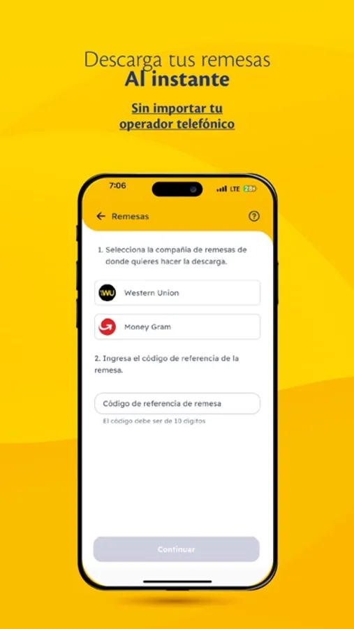• Remesas: recibe dinero del exterior a través de Western Union y Moneygram