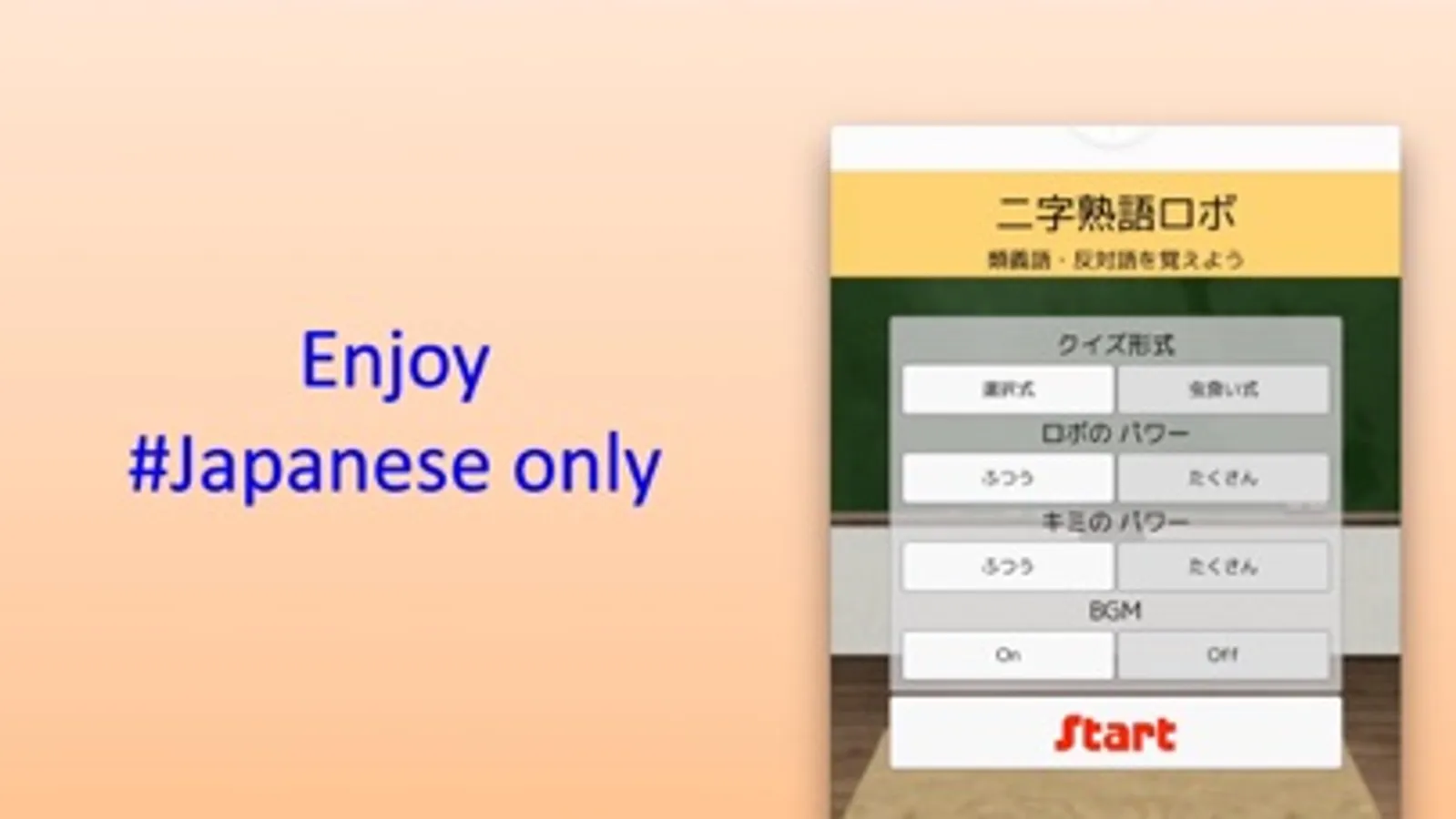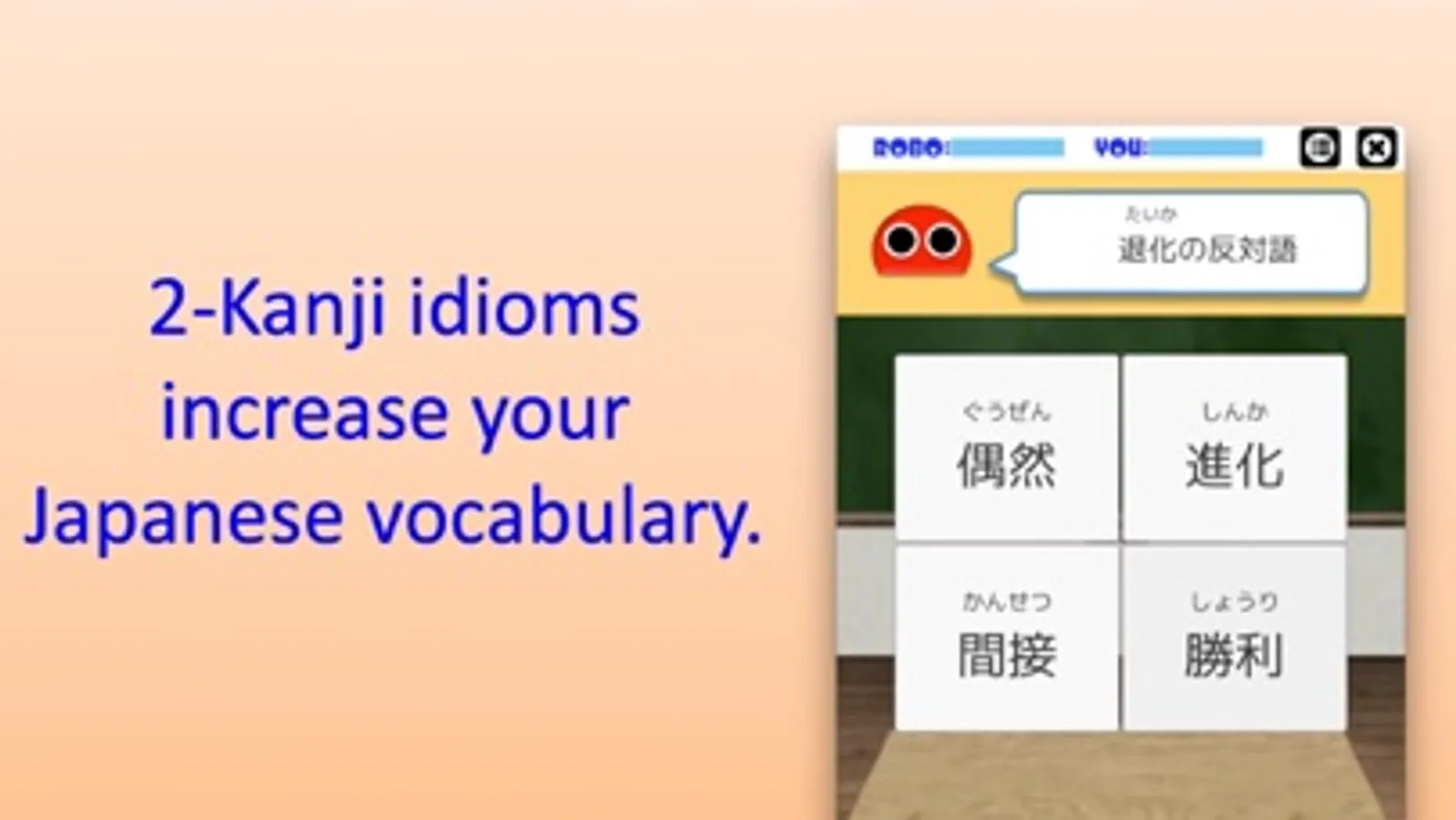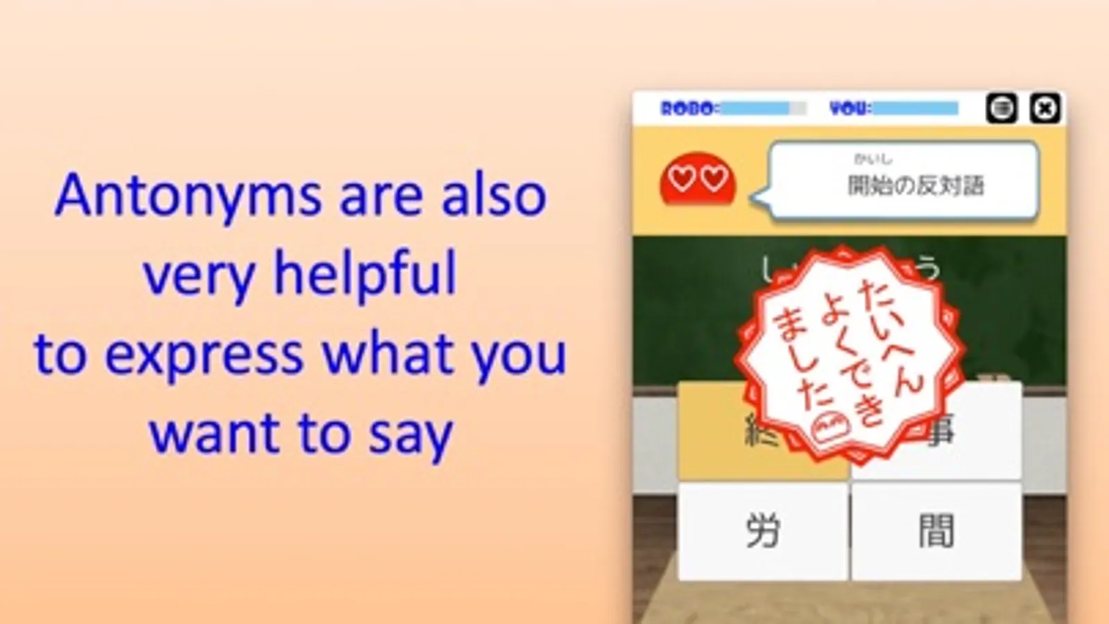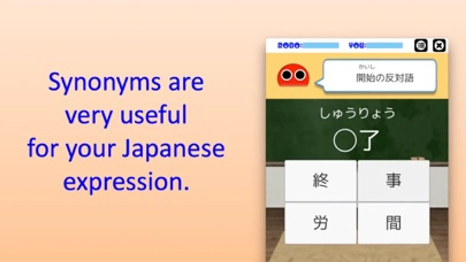 This app has a lot of synonyms and antonyms of two-kanji idioms for Japanese beginner.