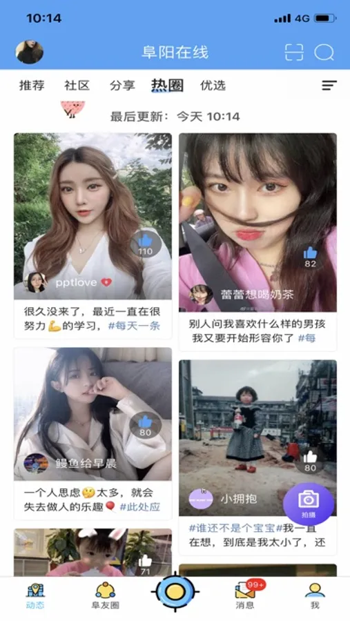 晒趣事、晒心情、晒美食、晒自拍、晒萌宝...男神女神、晒闺蜜、萌宠大赛进行中~随时随地和数十万阜友一起分享生活点滴。