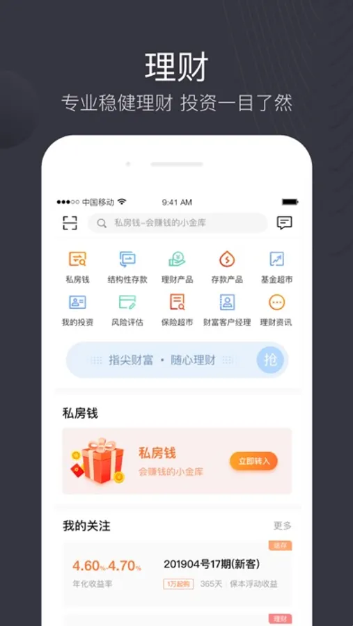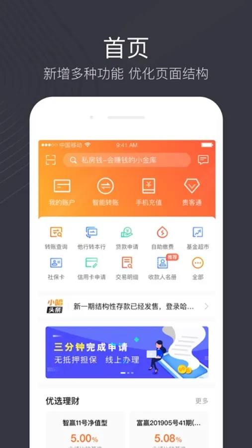 手机银行更加注重移动金融轻便快捷、碎片嵌入、随时响应的使用场景,为您提供贴心、智能、便捷的银行服务。