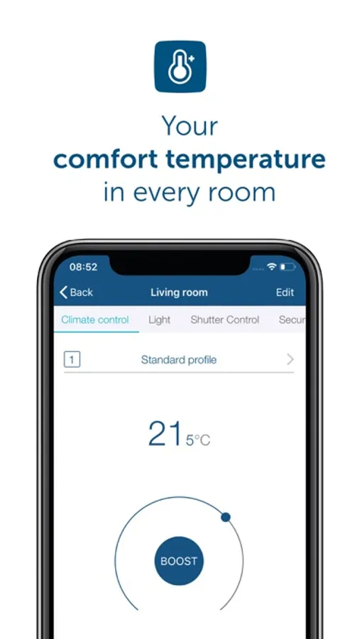 With this smart home app, you can control and automate devices for climate, security, lighting, and shutters. Includes device management, automation rules, and integration with voice controls.
