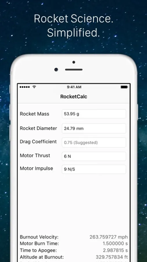With a beautiful new design, RocketCalc removes the frustration from rocket physics. Built on top of intelligent algorithms, RocketCalc seamlessly simulates model rocket flight using weather conditions at the launch site. RocketCalc is simple, intuitive, and powerful.