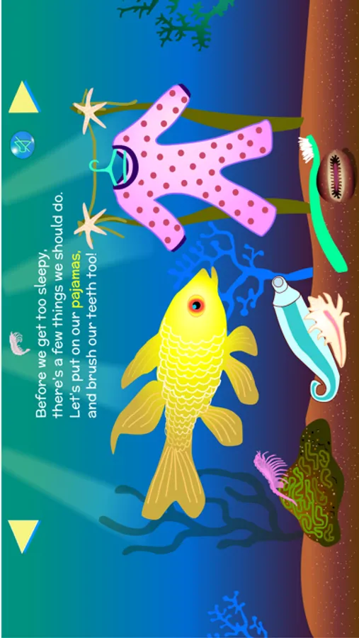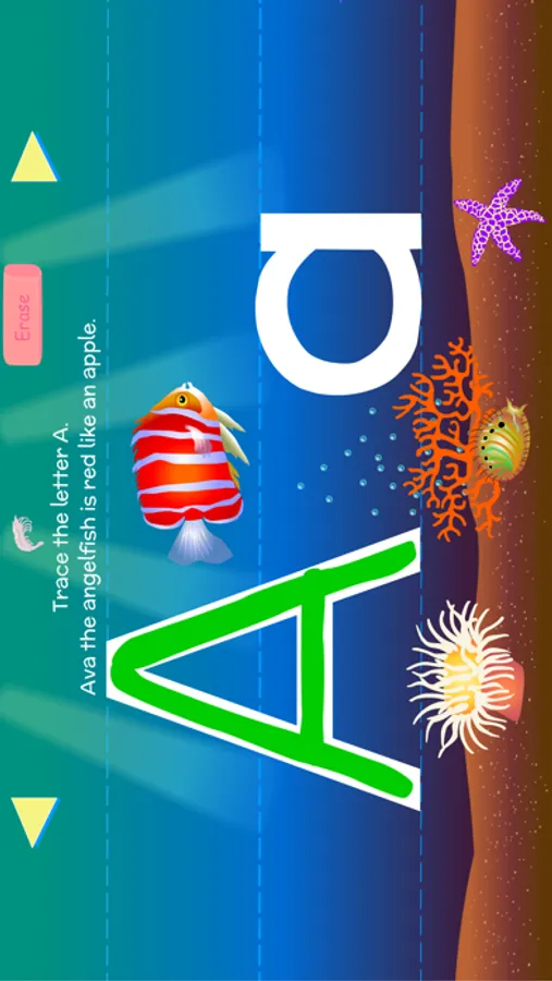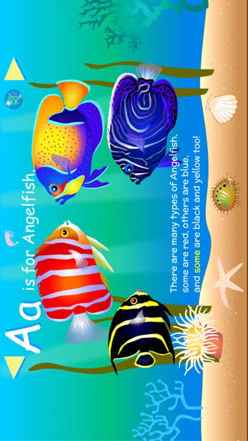 • ABC Song - Tap on a fish to see and hear a letter of the alphabet and tap again to access the fish story page.