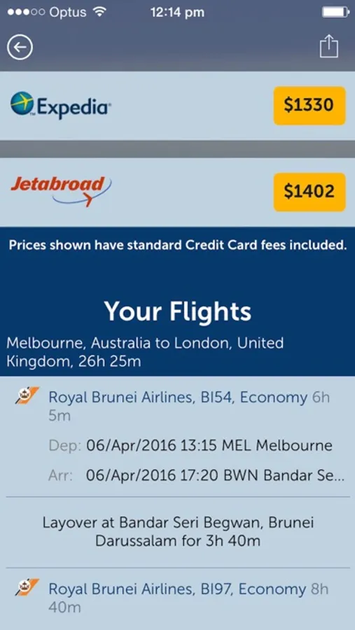 • Comapare prices with Credit Card fees already included, so no nasty surprises when you book.
