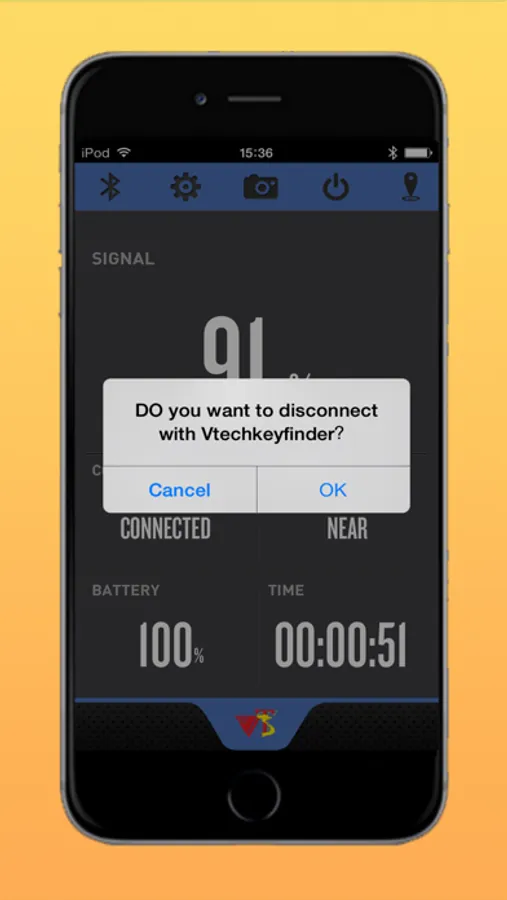 Tap the camera icon to launch camera in the app. Press the button on the Vtech Key Finder to trigger the phone take pictures