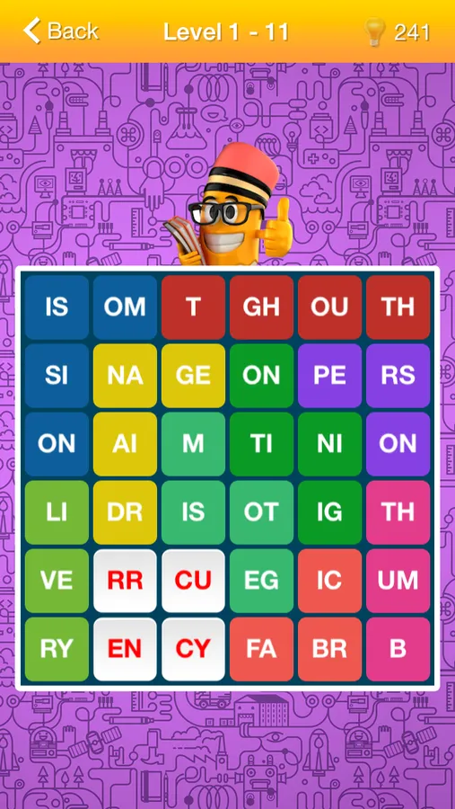 Worders: Word parts is a sequel of the challenging word game. The task is simple - you need to find in a rectangular field words that are divided into short parts/syllables. To complete the level you need to use all parts of the words and clear the whole field.