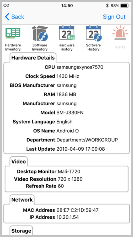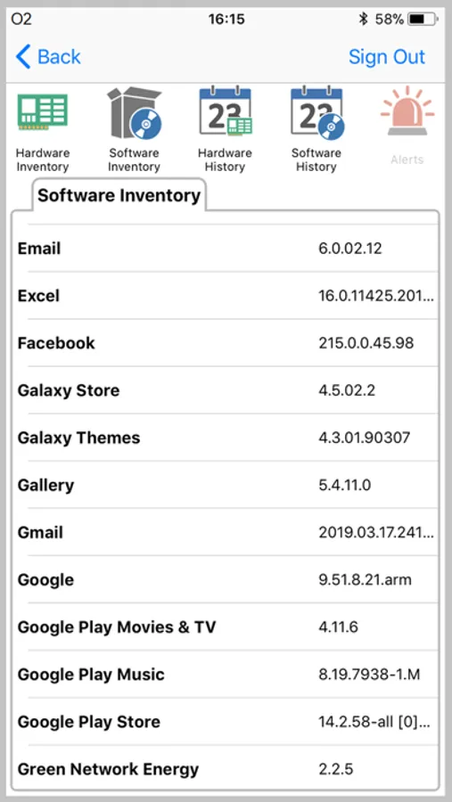 The DNA mobile app allows a Technician, when away from their desk, to search for and view a detailed Hardware and Software Inventory for any PC on the network.