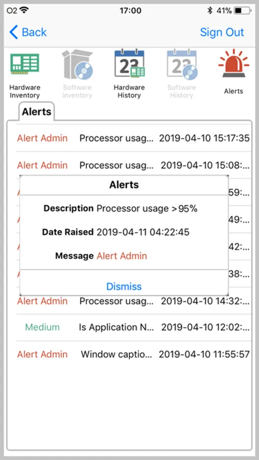 In addition to the Inventory and History views, the NetSupport DNA mobile app also highlights any new PC alerts that have triggered across the network.