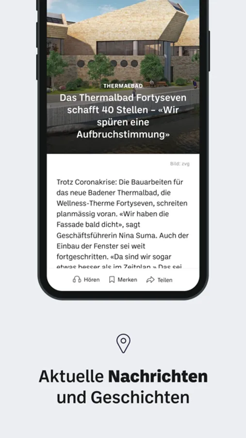 In der News-App des «Badener Tagblatts» lesen Sie laufend die wichtigsten Nachrichten aus Politik, Wirtschaft, Sport und Kultur auf Ihrem Smartphone oder Tablet. Im Mittelpunkt unserer Berichterstattung steht das Geschehen in der Region Baden, im Kanton Aargau und in Ihrer Gemeinde. Vertrauenswürdig und zuverlässig.