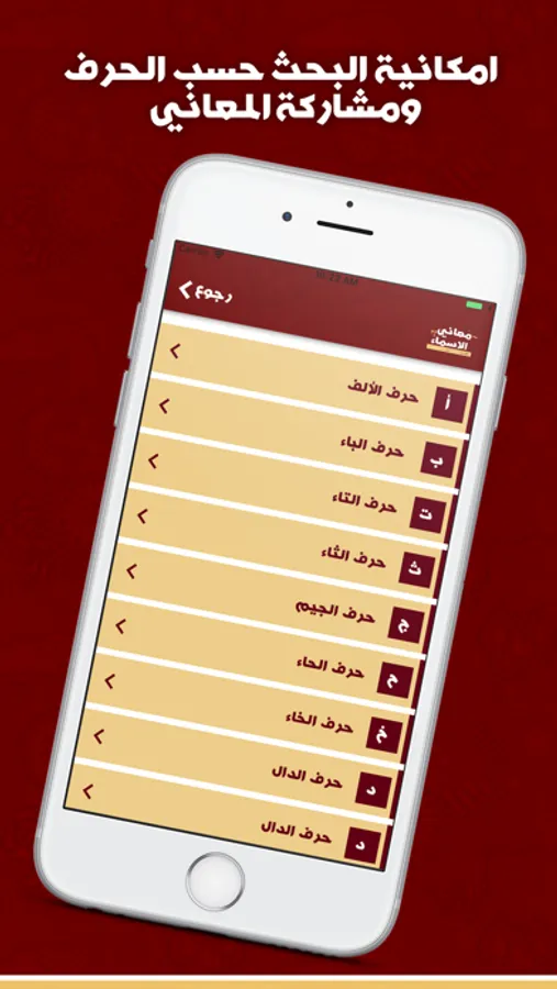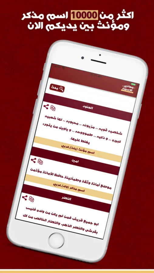 يحتوي تطبيق الاسماء العربيه على ١٠٠٠٠ معنى وشروح للأسماء العربية للذكور و الإناث