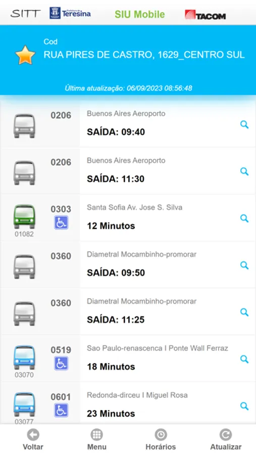 Aplicativo que permite visualizar o tempo de chegada dos ônibus nas paradas de Teresina
