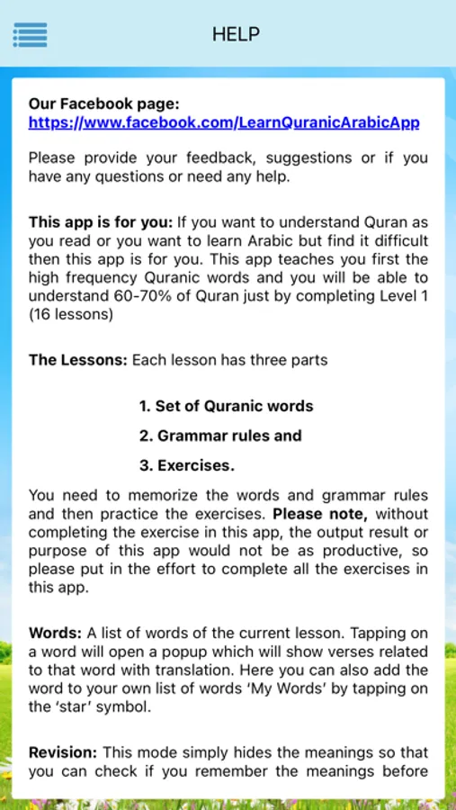 3. Want to learn Arabic language but have been struggling? Use this app and you will acquire a good understanding of the Arabic language, constructs, words and then can proceed further to advanced levels of learning Arabic language.