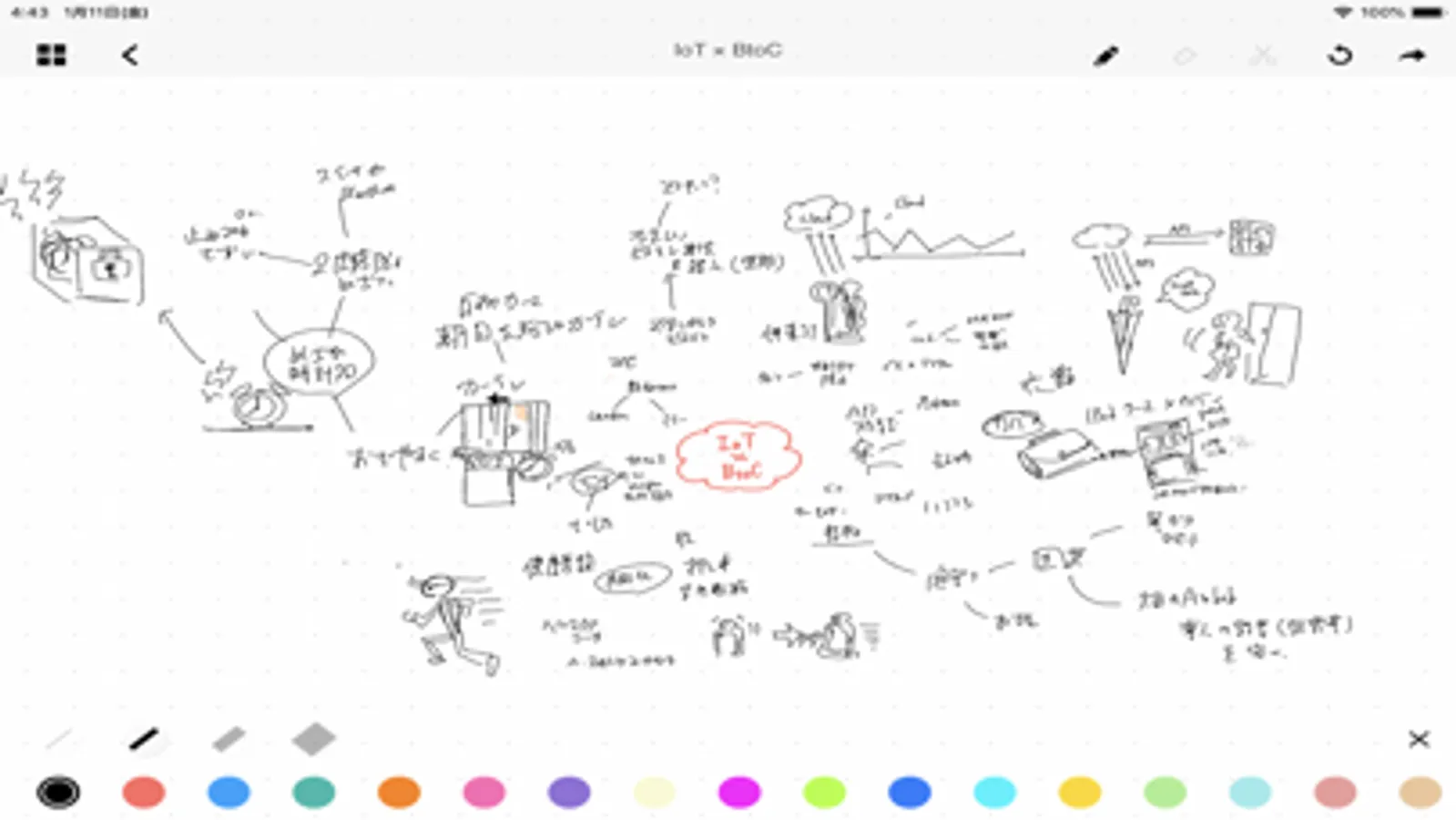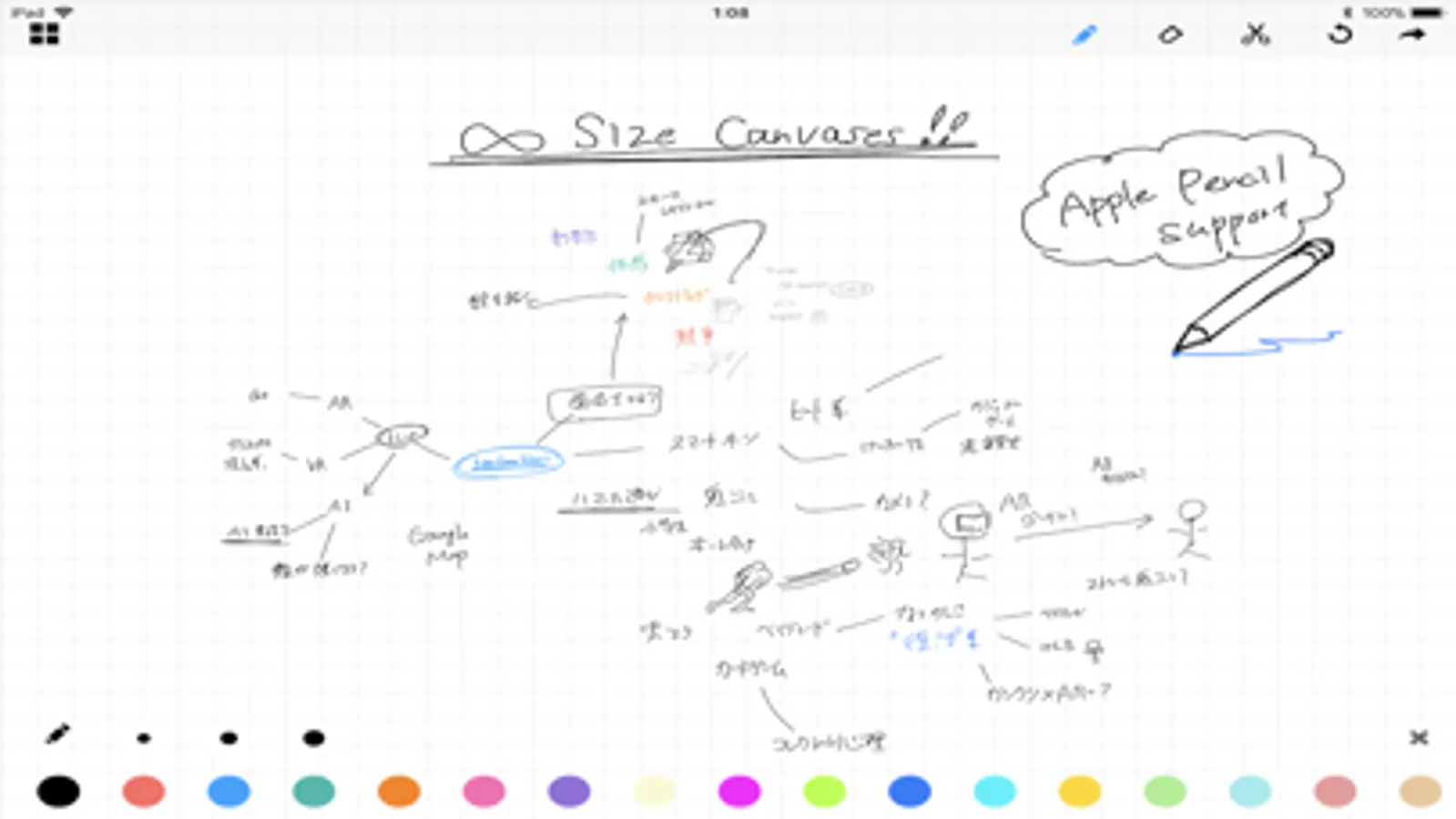 I think the brain's work when considering ideas is a random and radial working image rather than linear. Traditional notes that need to be written sequentially from left to right are not very suitable for this process. If you use this infinite size notebook application, you can freely expand ideas from the center of the page, so you can make ideas more natural. Ideal for creating rough mind maps, brainstorming and idea sketches.