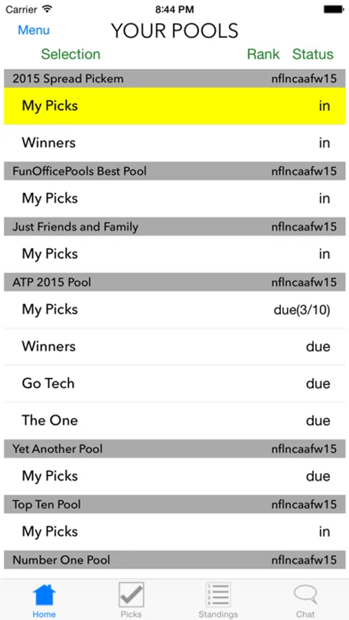 The companion app for www.funofficepools.com. Make your picks, see the standings, chat with your friends. Currently supports NCAA, NFL and combo (NFL and NCAA) pools created on FunOfficePools website. Supports all types of pools: confidence pools, pick set pools, custom point pools, and FunOfficePools' exclusive Bonus Pool. Commissioners can set custom deadlines, tie breakers, segments, and many, many more options. Pools need to be created on the website, but you can now make your picks and see score updates on your iPhone.