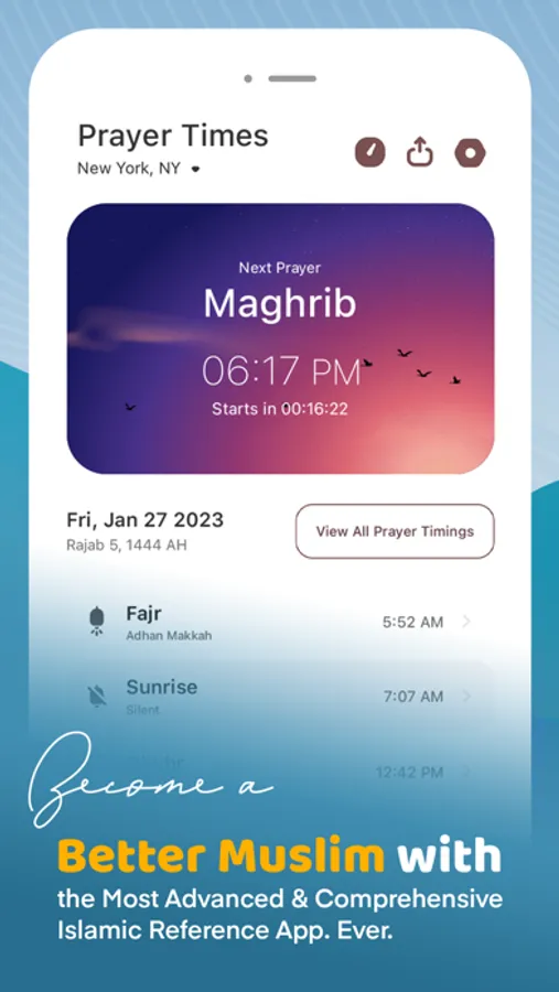 - Accurate Prayer Timings calculated for your exact geographical location.