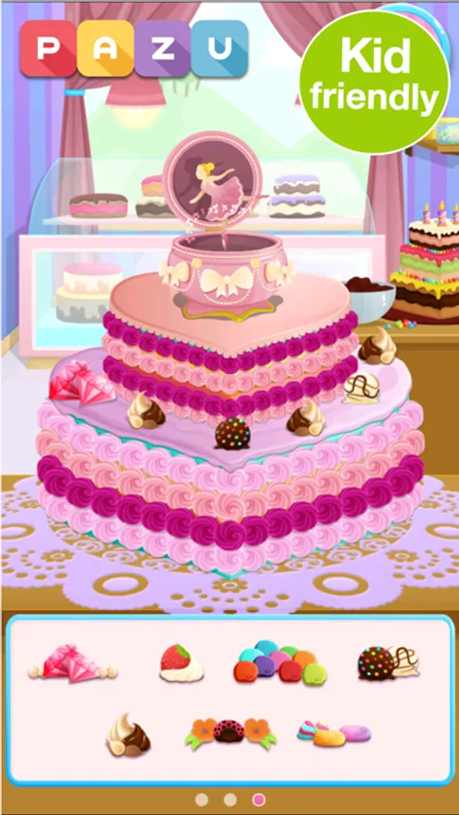 Cake Maker introduces the colorful world of cooking, baking and cake decorating to young children. With a variety of cake flavours, toppings, candies and decorations, you can design your own beautiful cake and enjoy a creative experience full of fun and imagination.