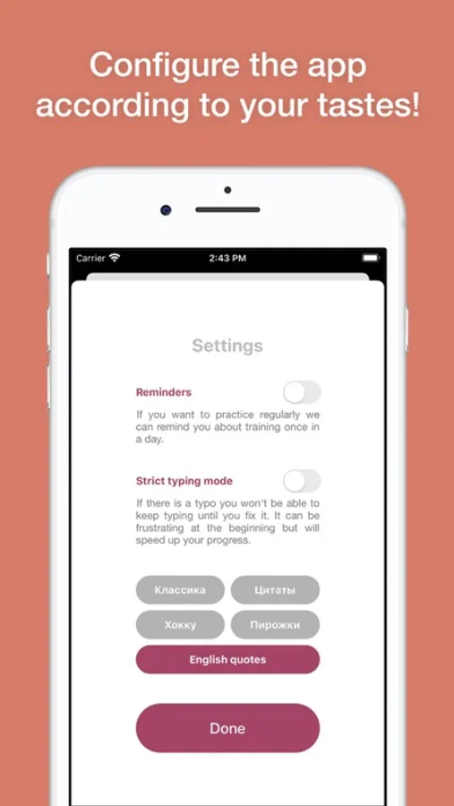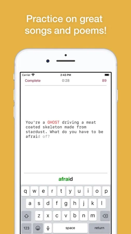 We noticed our parents aren't very fast at typing on the iPhone. We tried to find some good app, that we would like, but failed. So we decided to create our own typing trainer app for them.