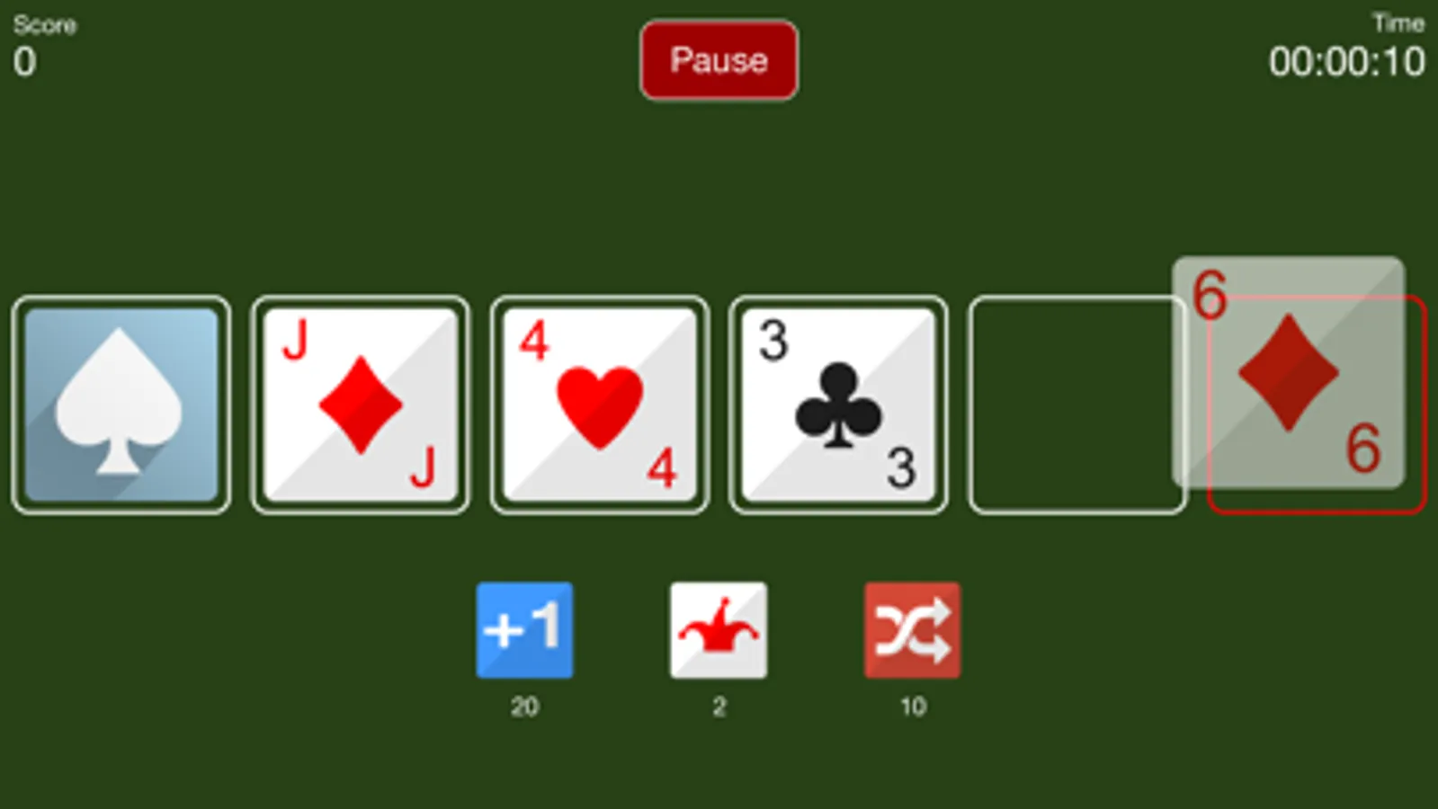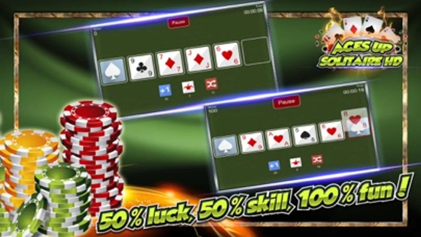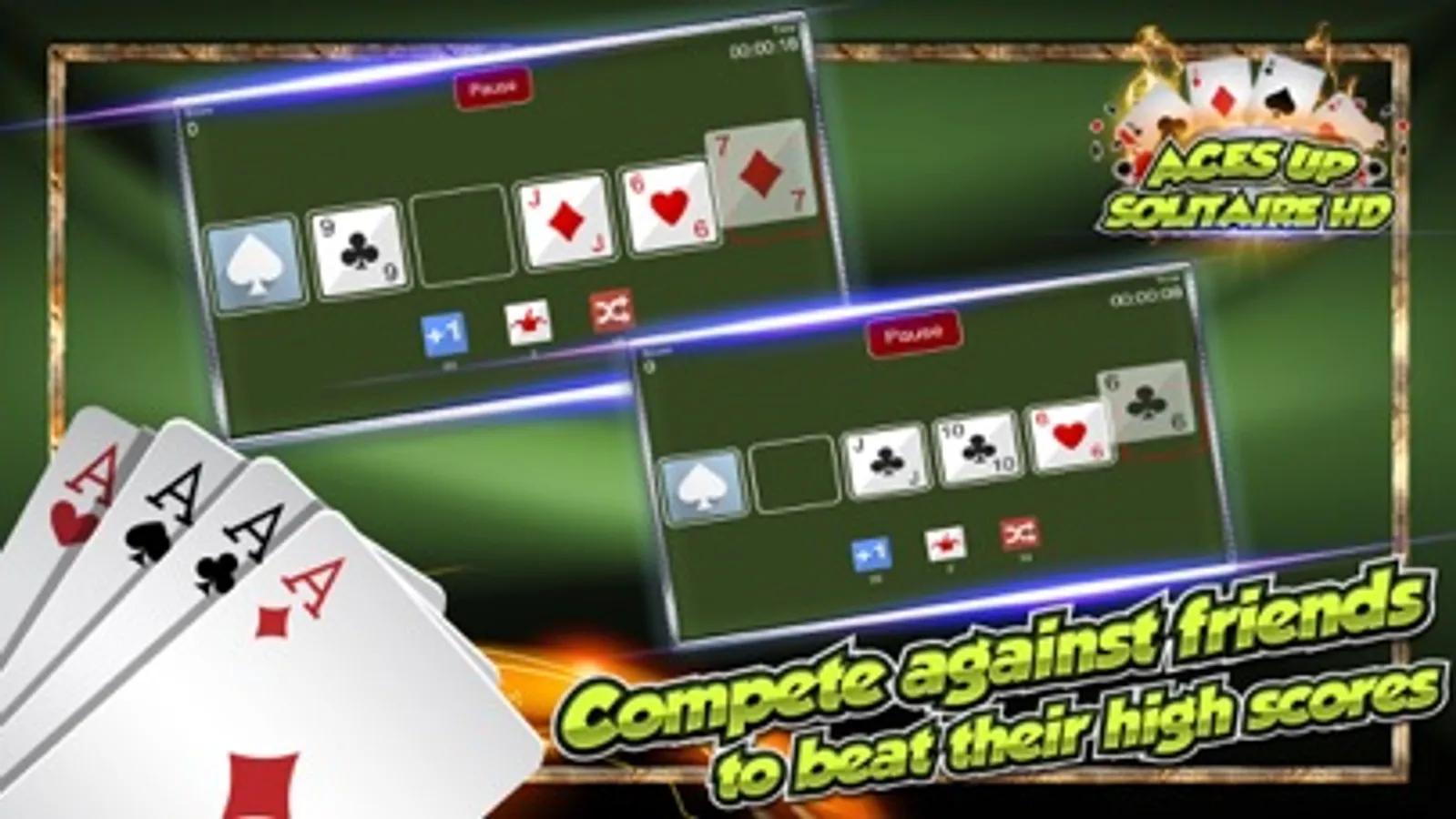 Leave the fewest number of cards on the table in the fastest time. Win completely by removing all cards except the 4 Aces.