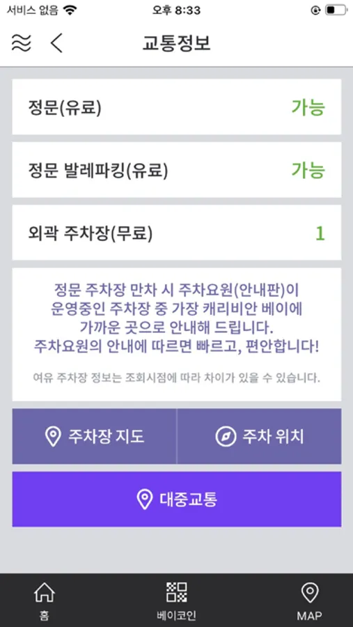 방문전 모드 : 입장현황, 여유 주차장 등 오는 중에 필요한 정보까지 한눈에~