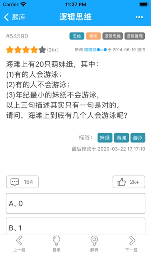 33IQ智力题库每日更新,超过十万道的侦探推理题和逻辑思维训练题,烧脑益智学知识!