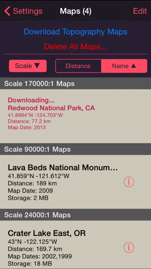 • Downloads from a library of over 67,000 maps from NPS, USGS, US Forest service.