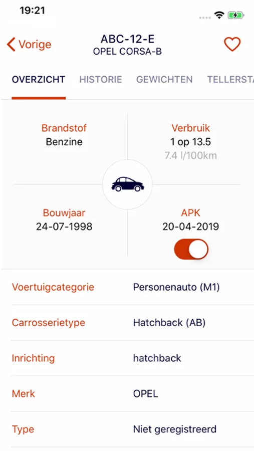 - Uitgebreide voertuiggegevens opvragen zoals bijvoorbeeld: brandstofverbruik, vermogen, het zuinigheidslabel, gewicht, informatie over de tellerstand, eventueel ‘status gestolen’ en informatie over terugroepacties.