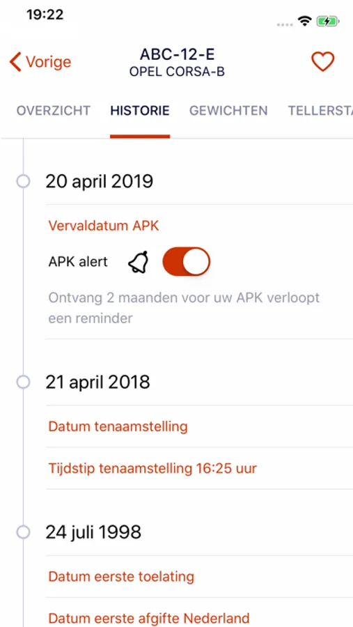 - Via de alert-button kan je een APK-herinnering instellen. Je hoeft dus nooit meer te laat te zijn met het maken van een keuringsafspraak.