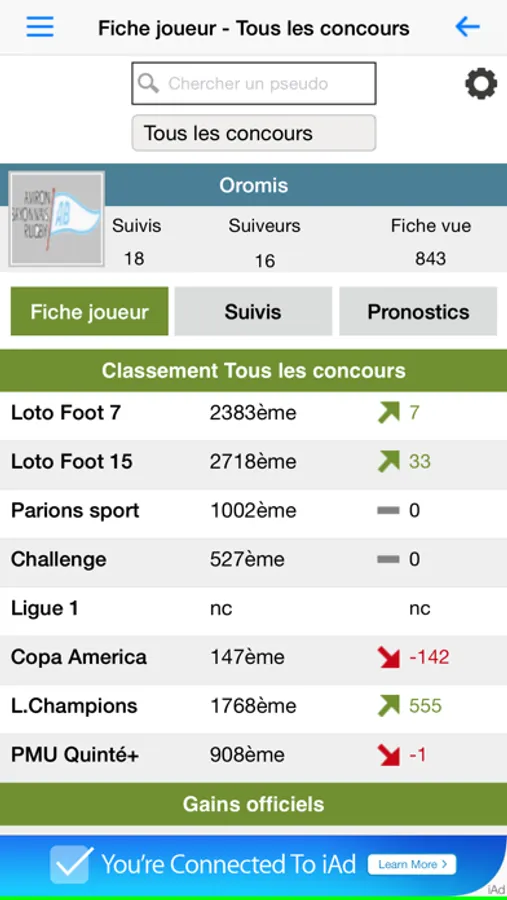 Retrouvez vos différents classements, soyez notifiés de vos résultats et classements, suivez des membres et consultez les répartitions des pronostics et différentes statistiques.