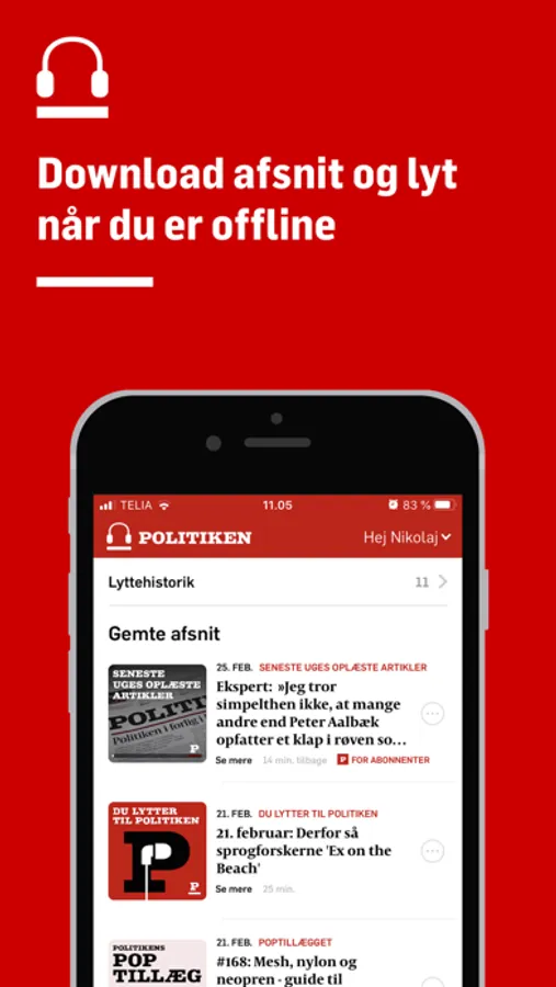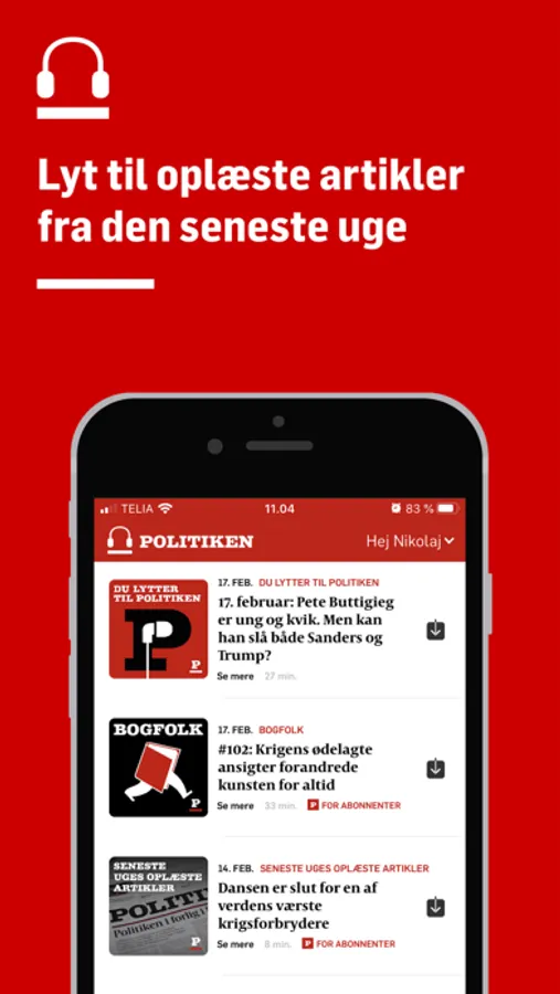 Med podcastappen har du nem adgang til hele Politikens lydunivers - lige ved hånden. Download vores podcastapp og få følgende fordele: