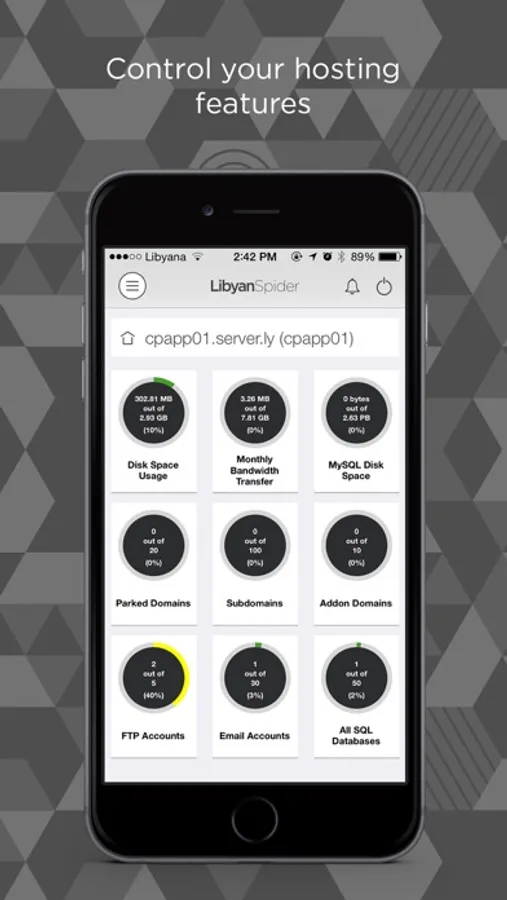 Manage your web hosting using Libyan Spider App for cPanel on the go, all cPanel features are available within your mobile: