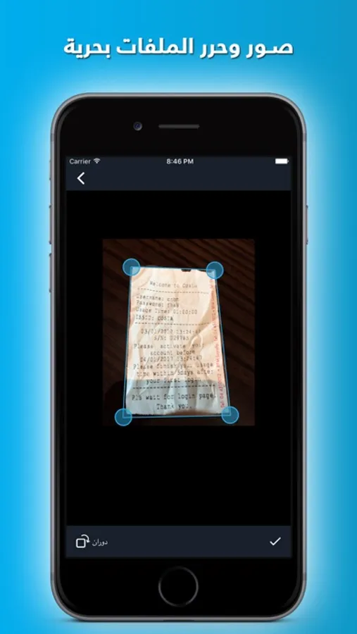 تطبيق الماسح الضوئي يحول جهازك إلى ماسح ضوئي في حجم الجيب، حيث يتمكن هذا التطبيق من تصوير الوثائق و المستندات و يقوم بالتعرف على جميع المستندات والصور، وتتم عملية المحاذاة والقص أوتوماتيكياً. مما يمكنك من حفظها بصيغة PDF أو JPG.