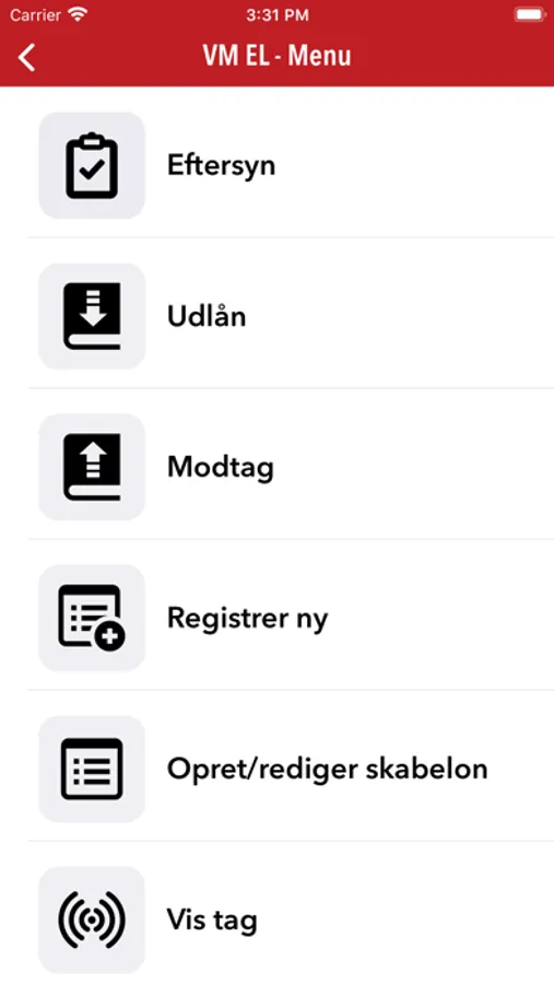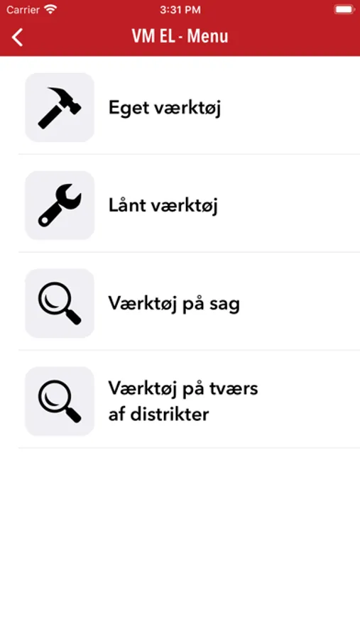 Denne applikation er til registrering af eftersyn på værktøj til systemet VM EL.