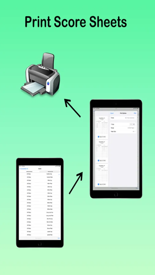 Save time on the day by printing results sheets with Competitors names already entered directly from App via AirPrint.