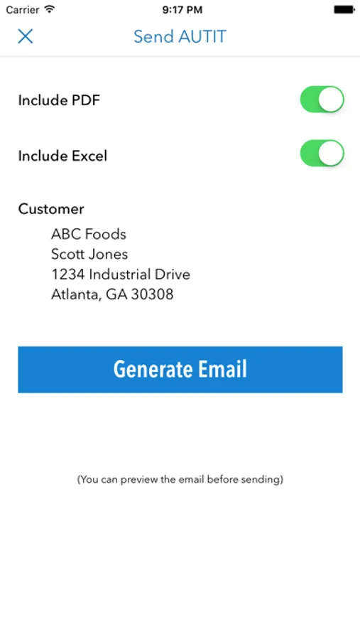 - Generate reports in Excel and PDF format and send directly to your customer right from the app!