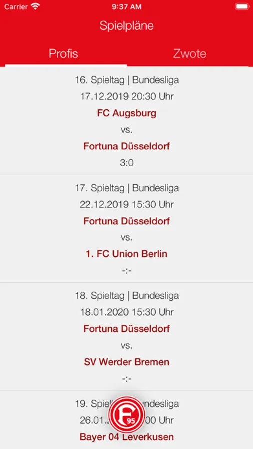 Mit der Fortuna Düsseldorf Fan App für iOS hast du immer alle Informationen rund um F95 auf einen Blick.