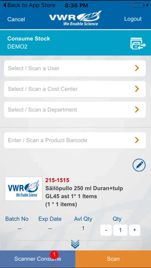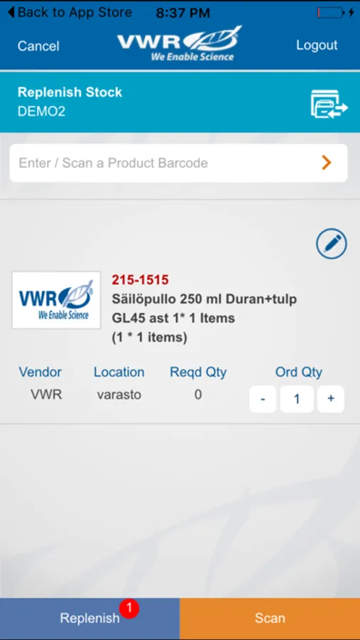 The mobile version of VSR+ technology is a warehouse and inventory management system that supports VWR products as well as third-party products from any vendor. VWR Lab Supplies Management addresses daily tasks such as picking of goods, re-ordering products, as well as correcting stock levels.