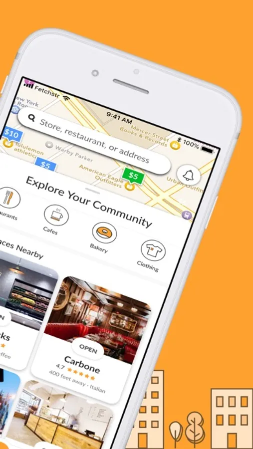 Fetch or Request from every local store or restaurant. From vintage clothing stores, big retailers, and boutique shops, to the local Italian spots, cafes, and bakeries.