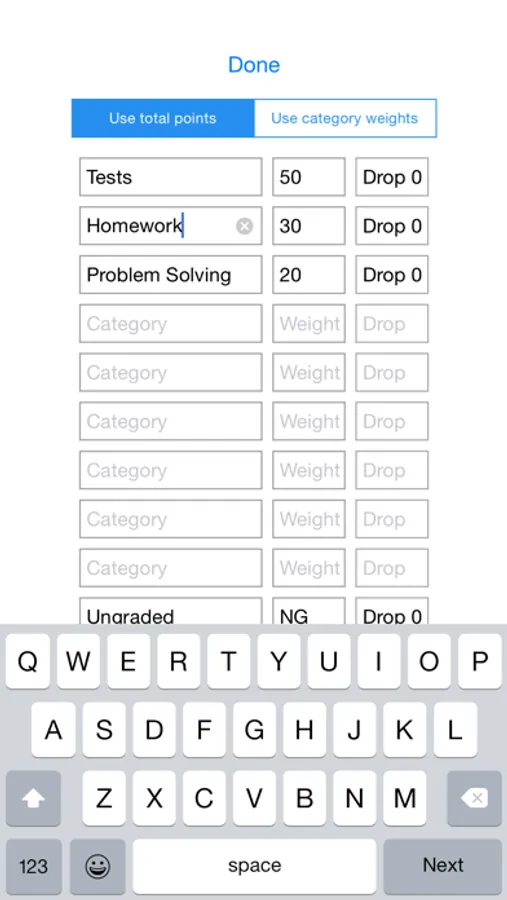 - Compute grades using total points or category weights