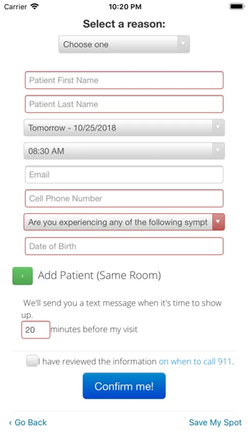 • “I was in and out! The Save My Spot was very convenient and made it much easier to access care!”