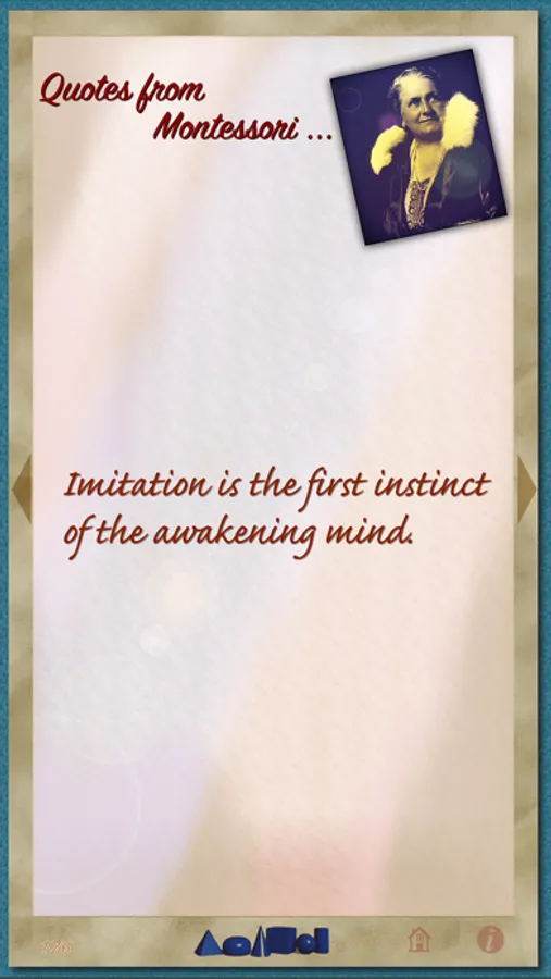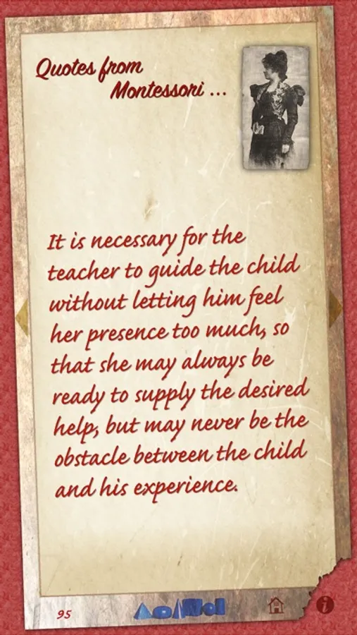 This app is a tribute to the work of Montessori and the depth of her teachings and thinking. It contains 237 quotations from across the spectrum of her life and work. For those who already “Love Montessori,” we are sure you will find new inspirations as you read through the quotations.