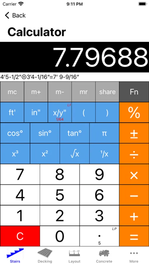 ◆Calculate (add, subtract etc) directly in feet / inches / fractions or decimals.