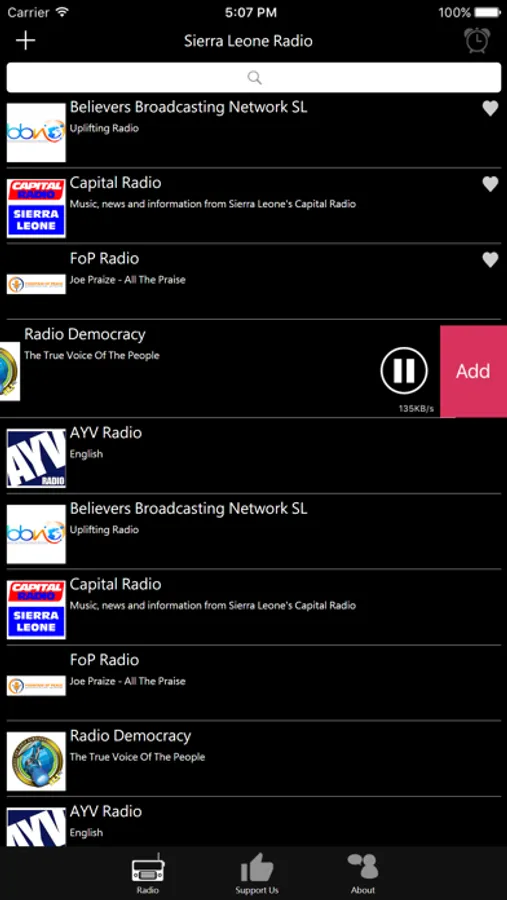 Sierra Leone Radio offers different radio channels in Sierra Leone to mobile users. You can easily find and listen to the broadcast anytime anywhere. Choose and Click to Listen brings you the convenience app experience.