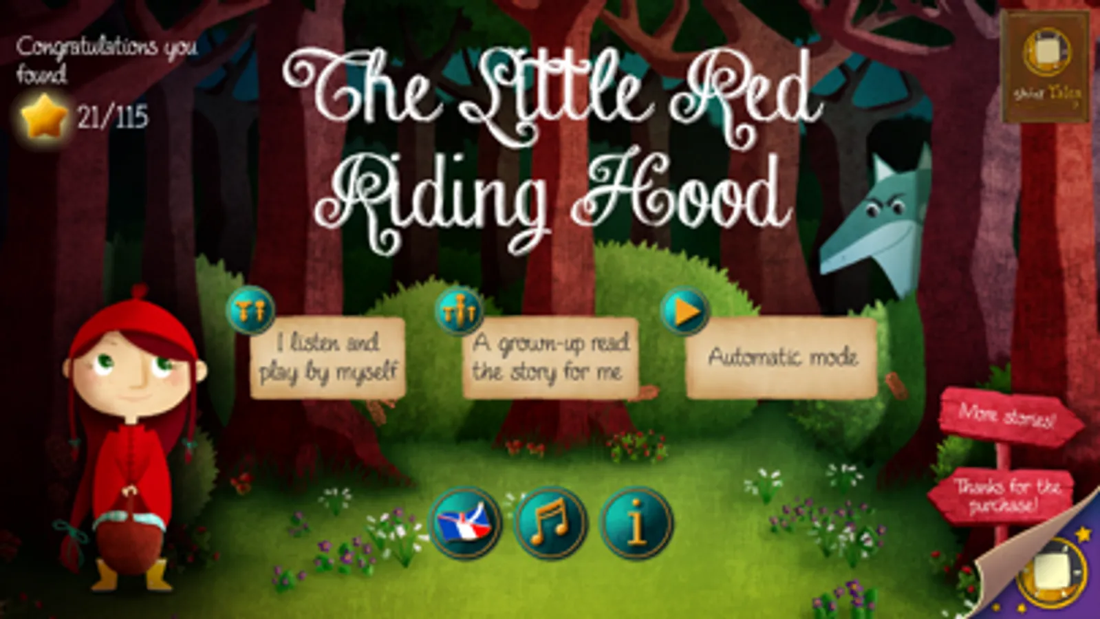 Rediscover the famous tale of Little Red Riding Hood, who must visit her grandmother but will meet the Big Bad Wolf on the way... A timeless story reenacted in a light and fun way for children, with many interactions to read, learn and