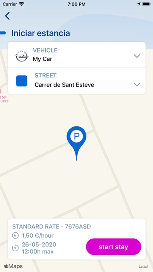 opened Aparcar App and start your stay at the blue area. Thanks to the