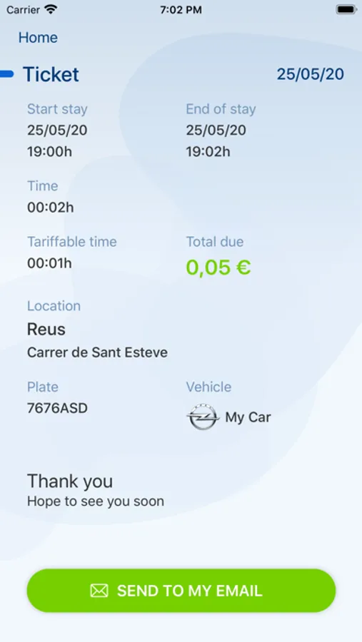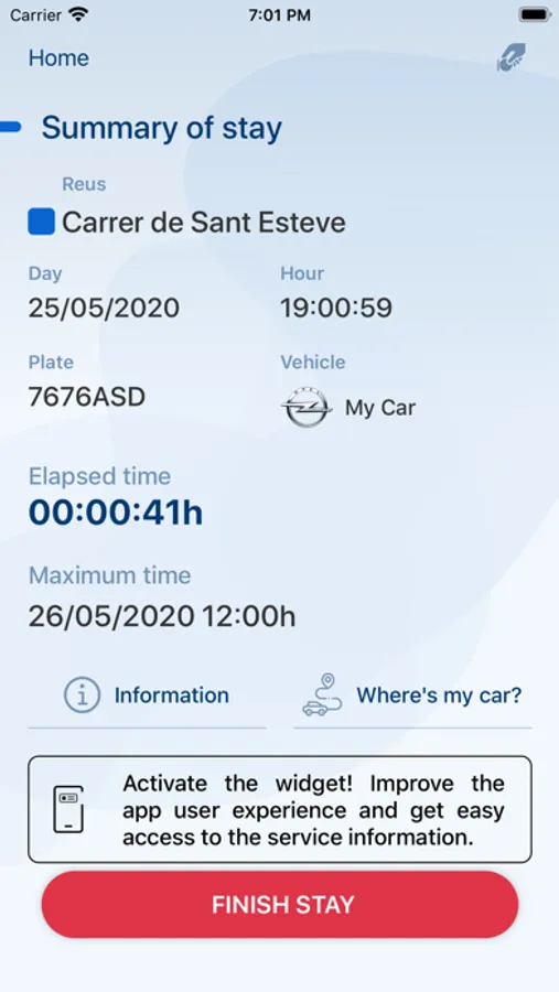 where your car is and the fee you have to pay for. The app warns you some time before you reach the total time you paid for (you decide when the warning period starts: from 5 min. to 60 min. before). You needn't worry any more to get your ticket and leave it on a visible place inside your car.