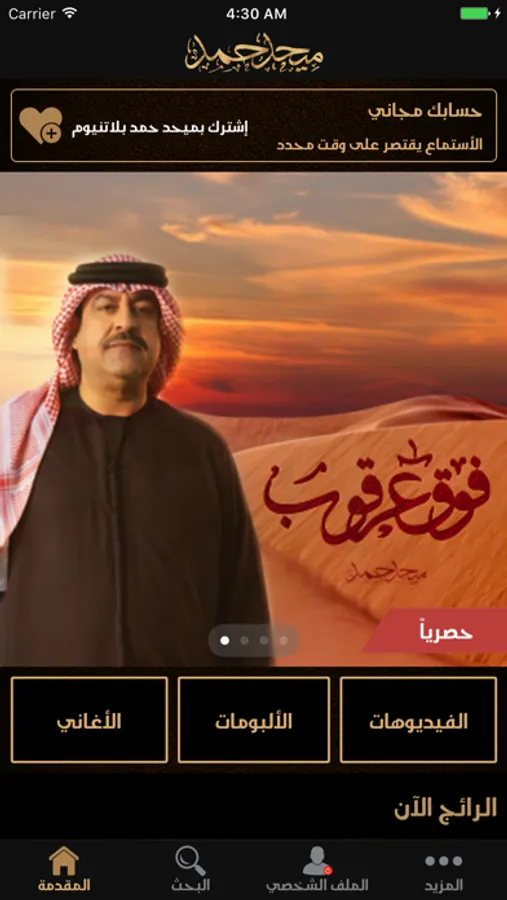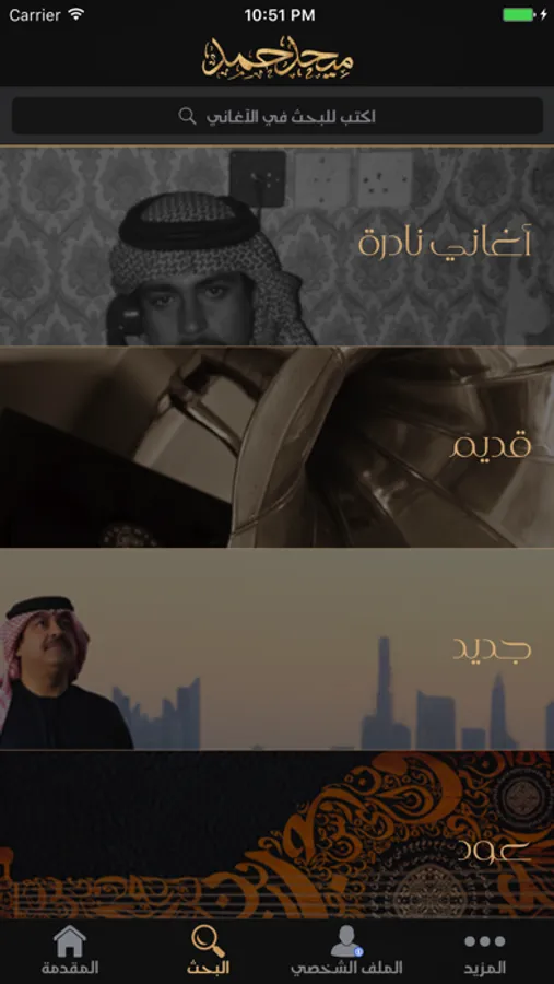 التطبيق الموسيقي الخاص بفنان الامارات الأول ميحد حمد يحتوي على كل أعماله الفنية على مدار 38 سنة و ما يميز هذا التطبيق عن غيره هو :